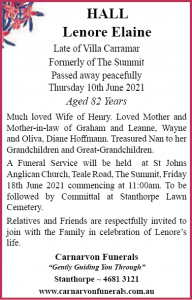 Hall, Lenore Elaine Carnarvon Funeral Services Our sincere and deepest condolences to the Hall Family. Required Field Message FromMessage To:Click below to send your messages to the correct Family.—Abbott, Terence George "Terry"Achille, RoseALBERTON ElizabethAllan, Dennis WilliamAllum, Shirlie JeanANDERSON Wyndham Macdonald (Mac)Appleton, Renee JaneArden, Stephanie AnnAtkinson, Alwine IsobelAuliff, Ralph PeterBACCHETTI BrunaBAILEY Peter JohnBainbridge, Ian FrankBaker, Barry WalterBallinger, JuneBamberry, Doris MerleBarber, Julie MaragaretBarbierato, DarioBARKER Ronald WilliamBarker, Richard James 'Dick'Barlow, Stanley LewisBarnett, Phyllis MargaretBarry, Graham Thomas JosephBarry, Robert JohnBartlett, Allen GeorgeBaseggio, MariaBates, Henry ErwinBathersby, Michael ConquestBathersby, Muriel AileenBatki, VinceBATTEN Micheal StephenBATTERHAM KEVIN BRUCE (SKIPPY)Batterham Trevor JohnBatterham, Donald ThomasBatterham, Gail RuthBatterham, Maurice LyalBatterham, Noel Bradman "Blue"BAUSCH Joan ShirleyBeahan, KevinBEAHAN, Patrick GerardBeard, Joan IsobelBeattie, George HenryBeckett, Douglas JohnBeddow, RitaBELFORD KeithBELL Zonya Wendee JoyBell, Colin DavidBell, Jewell Cora JoanBELLERI Rosa - BELLERI JimBENNETT Victor FredrickBERLESE ErmenegildoBerlese, ErnestaBERNOTH GlennBertinazzi, Lorenzo BrunoBertram, Doris JeanBIDDLE Maxwell Eric (Max)Binkins, Michael PaulBlack, Brian JohnBlank, Sydney Joseph (Syd)Blue ChristmasBlue Christmas 2024Blundell, Peter CharlesBlundell, Peter WarrenBolton, Janice EvelynBolton, Leslie WilliamBONETTO Adelina (Linda) FrassettoBonner, Peter RolandBonner, Therese 'Tere'Bonoguore, Michael JohnBOOTH Grahame SidneyBosel, Madeline RubyBoston, Shirley AnnBOTT Peter JohnBott, Ruth JoyceBoucher, Michael NeilBougoure, ElaineBOUGOURE, EuniceBourne, Joan Alix FitzroyBourzali, Zineb Agnes (Zina)Boyce, Edward Peter (Ted)Boyce, Joseph John "Joe"BOYLE Vincent Thomas (Pat)Bradford, Patricia Faye 'Pat'BRADY Brian JohnBRADY Patrick Arthur (Stubby)Brandrett, AnthonyBRISOTTO Dino GiorgioBrisotto, Gianni Vincenzo (John)Brisotto, Melanie NicoleBrown, Dawn LatriciaBrown, June MaryBrown, Ronald "Joe"Brown, Veda JoyceBROWNE William JosephBrowne, Mary MillicentBurger, Louisa Angenita JohannaBURGES MaureenBURMESTER JeanburnsBurns, Margaret MaryBurns, Thomas Charles "Tom"BURTON, Charles Francis Boysen "Boyce"Burton, David CharlesBurton, Roslyn Christine (Roz)Buscher, Jochen (Joe)Bush, Kenneth CharlesButler, Mavis BerylButler, Olive HelenButler, Trevor FrancisBykowski, Marilyn AnnCALA SebastianoCALOTTI Maria AntoniaCannavo, CarmeloCantarella, LugiaCantwell, Daniel JamesCANU Giuseppe Antonio SebastianoCaporali, Luigia Josephine (Josie)Capuzzo, ImmacolatoCardillo, CesareCarnell, Elizabeth MarjorieCarniel, AngelinaCarniel, Eugenio 'Eugene'Carson, Paul AlanCarter, Sydney BernardCARUSO CarmeloCaruso, GraziaCaruso, RossCasella, RosaCaslick, Stephen DavidCattarin, Gabriel ChristianCaulley, Ann GwendolenCave, Marjorie LillianChaplin, Ian LenardChapman, IreneChapman, Maxwell RaymondCharlwood, Anthony "Tony"CHERRY James LyleCicvarova, MariaCividini, Drago (Karl)CLARK Francis Graham JohnClark, Dolores (Shirley)CLARKE Barrymore Francis (Barry)Clarke, Mary HendersonCobon, Helen MayCoco, Salvatore 'Sam'COGHLAN Gary VerdumCoghlan, Noel William MichaelCole, Carolyn JanelleCOLLEY CarmelCollins, Kathleen DigbyCollins, Lisa GayeCollins, Lorna GwenColyer, TammyConnell Andrew 'Andy'Contarino, FrancescaCook, Patricia MayCooke, Adrian (John)CORKILL ThoraCorkill, MervynCorkill, Mervyn DanielCOSMO Doris JuneCourtney, Stephen WilliamCOWAN Jonathan DouglasCrang, Mavis VioletCrema, Mario CelesteCrisp, Lillian MaeCrisp, Neil TrevorCristina, Dawn MayCROMBIE Ian WilliamCROME RosemaryCrome, Doreene BettyCURRAN Audrey JoanCutuli, AngeloDachs, Beryl MargaretDachs, Helena EleanorDachs, Kerry JamesDACHS, Kym MichelleDalgity, Francis Alexander "Frank"DANIELLS Trevor JohnDaraz, SlavicaDART, Elizabeth AnneDay, Desmond Bernard (Des)Day, Douglas GeorgeDay, Kevin ThomasDay, Wayne SimonDean, Michael PhillipDEZUANNI, Eugenio 'Genio'DIBBLE Joan FrancesDibble, GrahamDipple, Lyndsay Thomas MeakinDonges, Carolyn JuneDonges, Frances LillieDonges, Joanne KathleenDONNELL Andrew WilliamDOORLEY Dorothy ClareDoorley, Peter RaymondDoro, Barry WilliamDOWDING Donald AngusDRAHEIM Ernest Allan (Ernie)Drake JackDUCK, Estelle FlorenceDunbar, Kenneth James "Kenny"Duncan, Elizabeth EstherDunn John WellwoodDunn, Dawn AdeleDunn, John WellwoodDunn, Peter JohnEbenestelli, GiovannaEgan, Barbara AnneEINAM Olwen NellieEinam, Raymond GeorgeEinam, Rita AliceEinam, Ronald Bruce 'Bruce'ELDRIDGE Beryl Joyce (nee Fossey)Elliot,Elliot, Geoffrey MaxwellEscolar, Tomas "Tom"Espulso, RosinaEvelyn-Liardet, David RoyEzzy, Douglas John (Doug)Fairbairn, Elaine MaryFarrell, Claudia MaryFAULKNER Alma ElizabethFawcett, HerbertFearnside, Linda JoanFEATHERSTONE Alma JosephineFERRIER Helen JeanFichera, MarioFILIPETTO FilomenaFletcher, Kevin SidneyFLOOD Stephen GeorgeFogarty, Kevin 'John'Forbes, Edwin FrederickForesto, Giovanni (John)Forsythe, Gwendolyne PatriciaFoskett, Christine ElizabethFoster, Helen ElizabethFoster, Vicki AnnFrancia, Anna MariaFreeman, Warrick AndesonFRESHWATER WinifredFuller, BettyFunk, Gordon John (Flash)Gaitskell, Faye AnnGalagher, Robert CharlesGangemi, FrancesGangemi, Giovanni "Johnny"Gangemi, GiuseppeGarcia, Margaret ElizabethGARDINER Wayne (Whisky)Gargiulo, Christopher JohnGARTH, Bernard JohnGarth, Kathleen NaomiGASKE Morgan DavidGasparin, TerryGastaldon, FlorindoGearing, Norman Stanley "Norm"George, Marie MayGilmour, Allan CharlesGilmour, Geoffrey HaroldGilmour, Patricia MaryGim, Alan RoyGIMM Ian KennethGimm, Beverley MayGimm, JeanGimm, Kevin LionelGimm, Rose AgnesGLEESON Neil Edward (Ginge)Gleeson, AnneGodman, Norma JanetGOEBEL Elaine AgnesGoodwin, Scott RonaldGoodyear, Mervyn LeslieGoodyear, Ronald Thomas (Cook)GOSSOW JeanGraham, AgripinaGraham, Noel WalkerGrammatico, Salvatore "Sam"Grant, Elsie VeraGray, DorisGRAYSON Robert SpencerGreen, Dorothy Helen (D